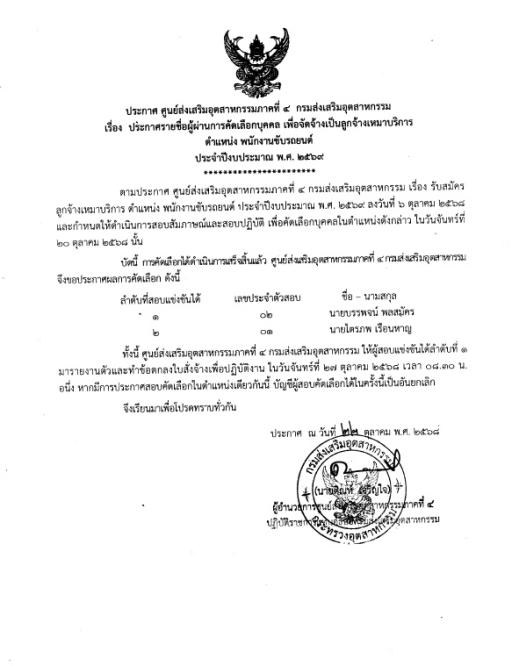 ประกาศรายชื่อผู้มีสิทธิ์สอบสัมภาษณ์และสอบปฏิบัติลูกจ้างเหมาบริการ ตำแหน่ง พนักงานขับรถยนต์ ประจำปีงบประมาณ พ.ศ. 2569