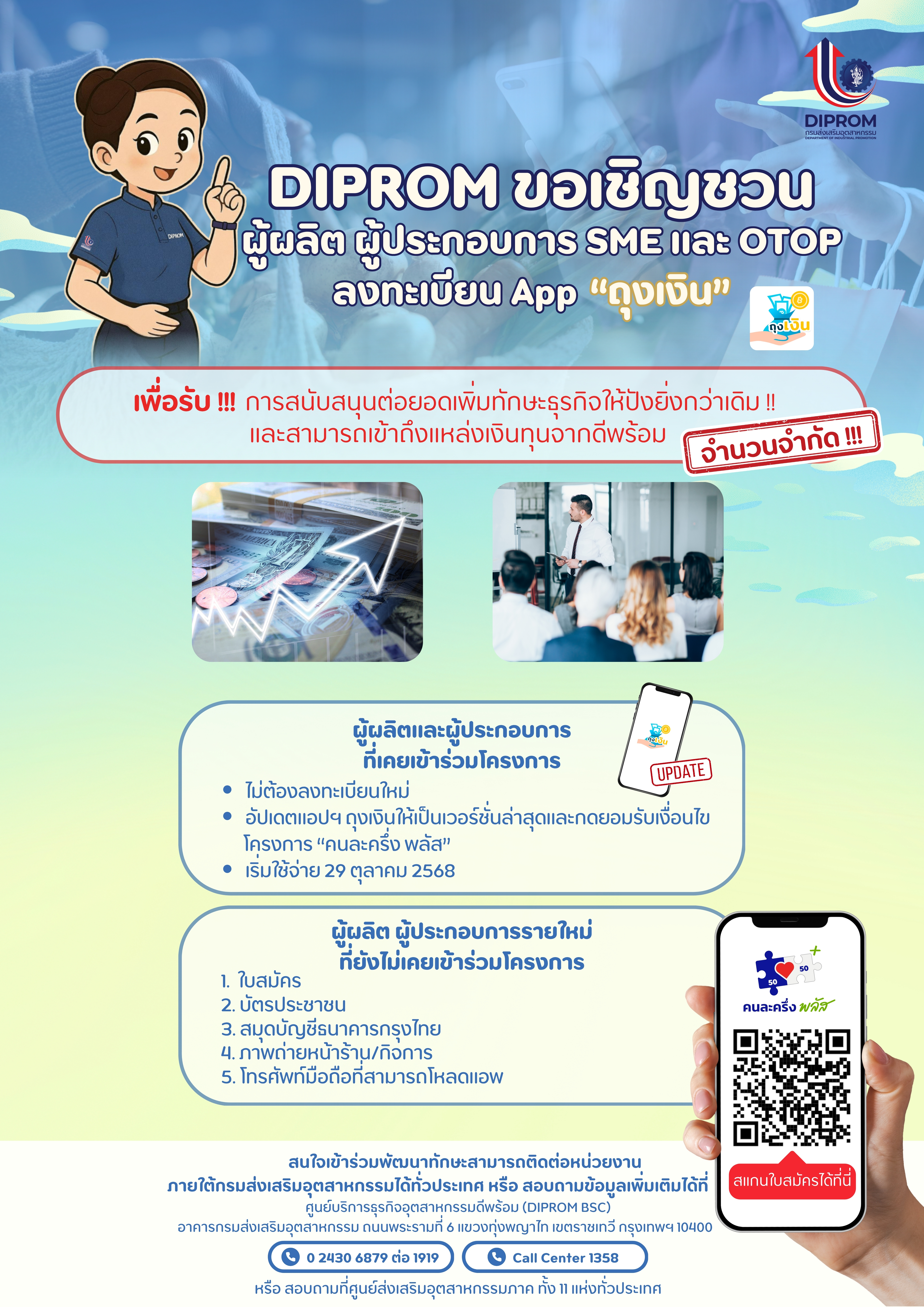 DIPROM ขอเชิญชวนผู้ผลิต ผู้ประกอบการ SME และ OTOP ลงทะเบียน APP "ถุงเงิน"