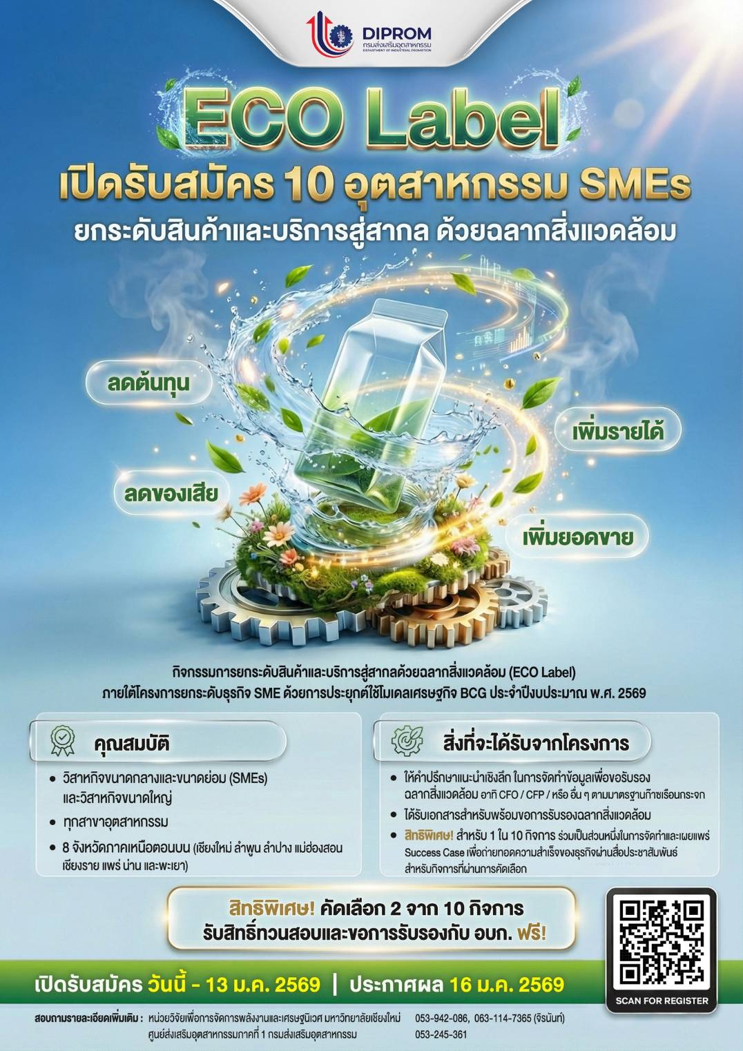 ขอเชิญผู้ประกอบการอุตสาหกรรมเข้าร่วม "กิจกรรมการยกระดับสินค้าและบริการสู่สากล ด้วยฉลากสิ่งแวดล้อม (Eco Label)" ภายใต้โครงการ การยกระดับธุรกิจ SME ด้วยการประยุกต์ใช้โมเดลเศรษฐกิจ BCG